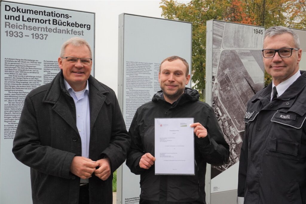 Landrat Dirk Adomat ist ebenfalls überzeugt, dass die Zusammenarbeit einen wichtigen Beitrag zur Demokratiebildung leistet: „Mit dem Dokumentations- und Lernort Bückeberg haben wir einen herausragenden Bildungsort in unserem Landkreis. Hier wird am historischen Ort gezeigt, wie Propaganda funktioniert und wie Zustimmung zu einer Diktatur erzeugt werden kann. Das Wissen darüber ist für den Schutz unserer Demokratie von großer Bedeutung. Die Polizistinnen und Polizisten werden hier einen tiefen Einblick erhalten, wodurch die ohnehin schon gute Demokratiebildung unserer Polizeikräfte noch weiter gestärkt werden wird. Es wäre sehr zu begrüßen, wenn andere Organisationen diese Kooperation als Blaupause benutzen würden.“