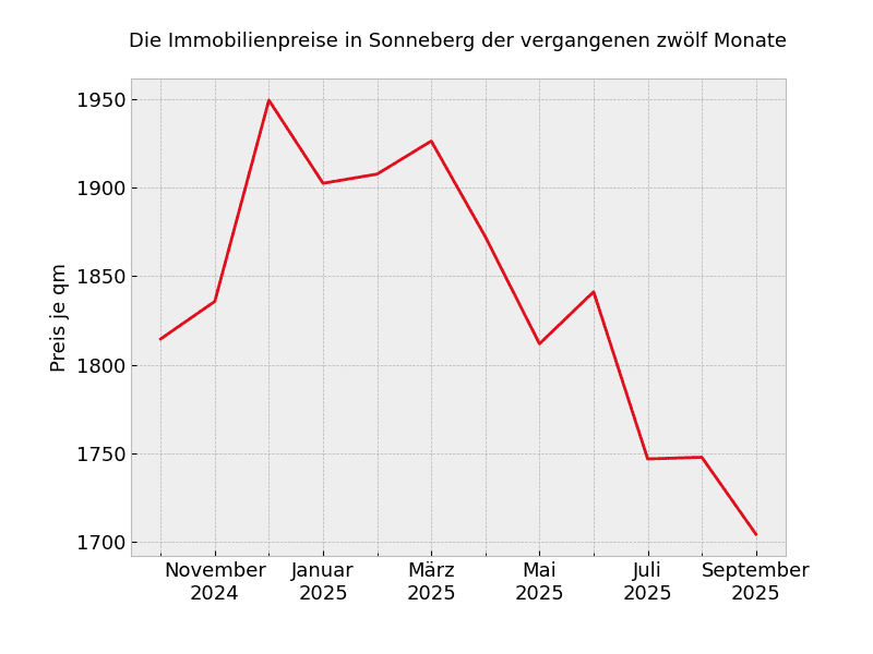 Unabhängig von der Wohnungsgröße müssen in Sonneberg mit Stand von heute 1.358 Euro pro Quadratmeter gezahlt werden.