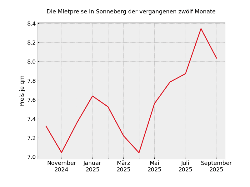 In ganz Sonneberg sehen die Mietpreisveränderungen wie folgt aus: