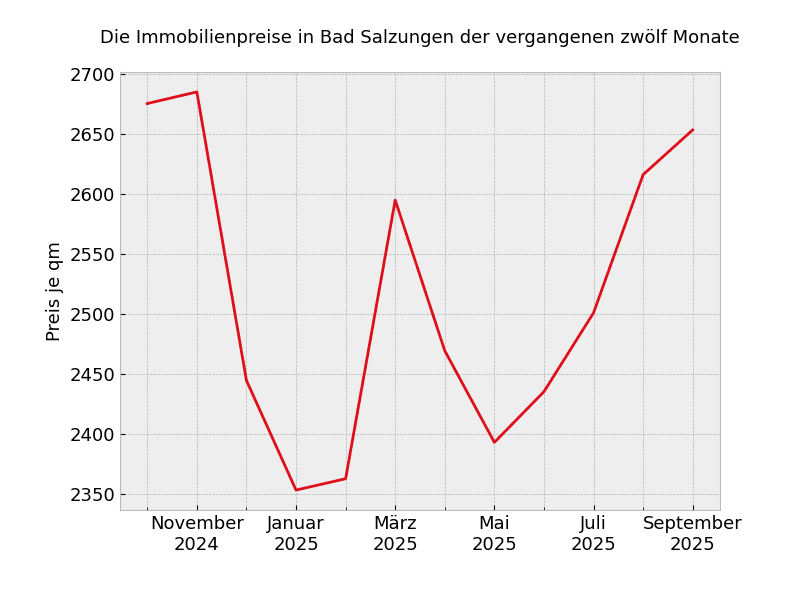 Unabhängig von der Wohnungsgröße müssen in Bad Salzungen mit Stand von heute 2.845 Euro pro Quadratmeter gezahlt werden.