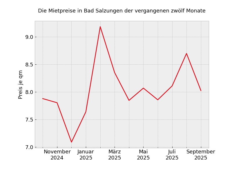 In ganz Bad Salzungen sehen die Mietpreisveränderungen wie folgt aus: