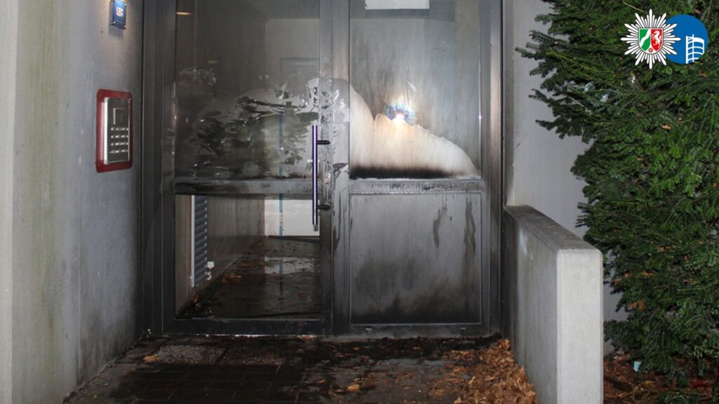 In der Nacht zu Samstag (01.11.) gegen 01:47 Uhr wurden mehrere Streifenwagen der Polizei Oberhausen zu einem Brand in der Bebelstraße alarmiert. Unbekannte Personen gossen im Eingangsbereich eines Mehrfamilienhauses eine brennbare Flüssigkeit hinein – möglicherweise Benzin – und zündeten diese an. Zum Zeitpunkt des Brandes fand in einer Wohnung des Hauses eine Feier mit rund 50 Teilnehmenden statt.