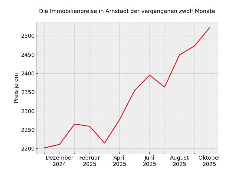 Mit 2.133 Euro pro Quadratmeter muss rechnen, wer zur Zeit nach einer Immobilien in Arnstadt sucht. Dies sind 12,4 Prozent mehr als noch vor einem Jahr.
