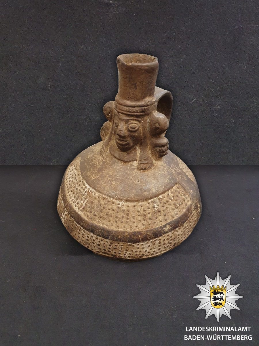 Im Juni dieses Jahres wies das Peruanische Ministerio des Cultura deutsche Behörden auf eine anstehende Auktion eines Antiquariats im Enzkreis hin, bei der die mutmaßlich ursprünglich aus Peru stammenden Kulturgüter verkauft werden sollten. Die für solche Fälle spezialisierten Expertinnen und Experten für Kunst- und Kulturgutkriminalität des Landeskriminalamts Baden-Württemberg (LKA) stellten, im Einvernehmen mit dem Auktionshaus, die Stücke zunächst sicher.