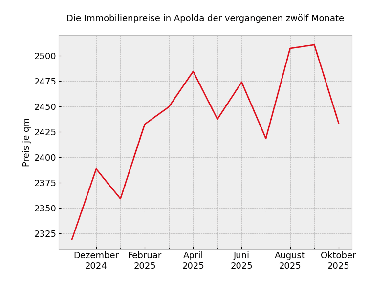 In ganz Apolda sehen die Mietpreisveränderungen wie folgt aus:
