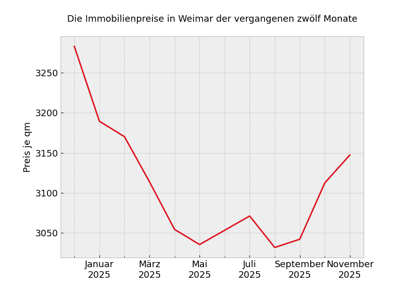 Unabhängig von der Wohnungsgröße müssen in Weimar mit Stand von heute 3.454 Euro pro Quadratmeter gezahlt werden.