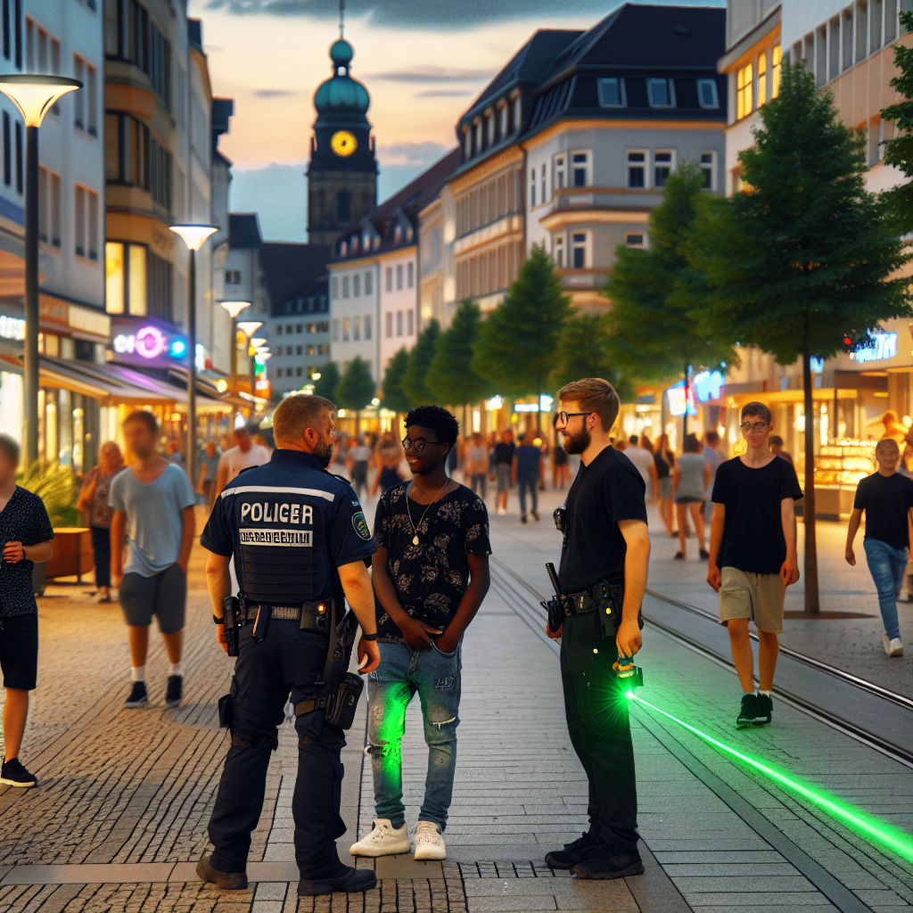 Gegen 22.20 Uhr kontrollierte die Polizei einen 17-Jährigen in der Neue Straße auf Höhe des Berblinger Turms. Der Jugendliche soll laut Zeugen mit einem grünen Laserpointer hantiert haben.