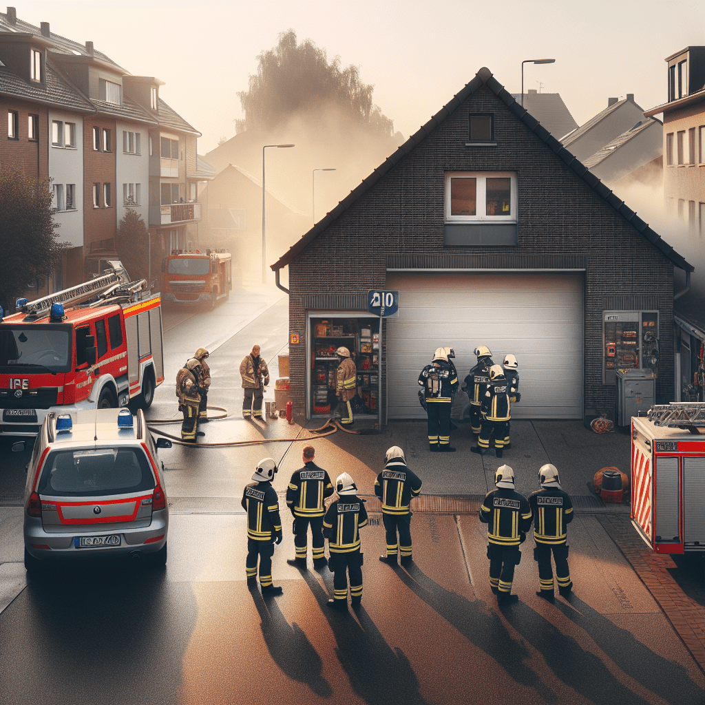 Gegen 5.45 Uhr meldete ein Zeuge Flammenschein von dem Garagenhof an der Straße ‚Am alten Amt‘ / ‚Heitkampsfeld‘.