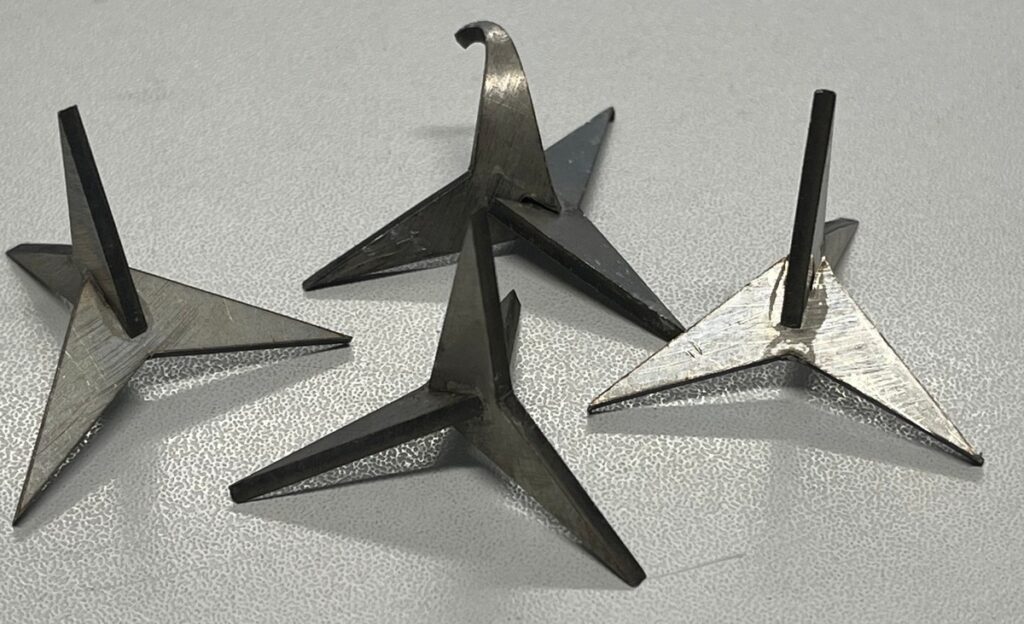 Unbekannte haben Krähenfüße aus Metall an zwei Stellen auf der Vom-Bruck-Straße ausgestreut. Diese Wurfeisen bestehen aus vier angespitzten Metallstiften, die so angeordnet sind, dass immer eine Spitze nach oben zeigt, wenn sie auf den Boden geworfen werden.