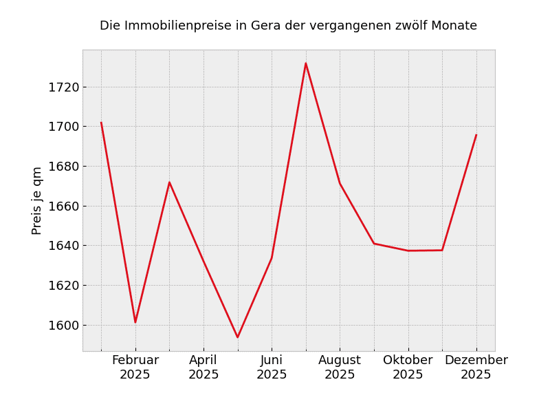Mit 1.345 Euro pro Quadratmeter muss rechnen, wer zur Zeit nach einer Immobilien in Gera sucht. Dies sind 10 Prozent mehr als noch vor einem Jahr.