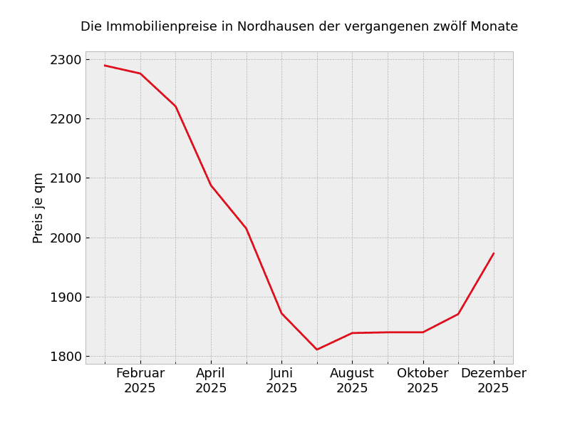 Neugebaute Immobilien kosten aktuell 2.964 Euro pro Quadratmeter. Eine Altbauwohnung kann man in Nordhausen für einen Quadratmeterpreis von 1.781 Euro kaufen.