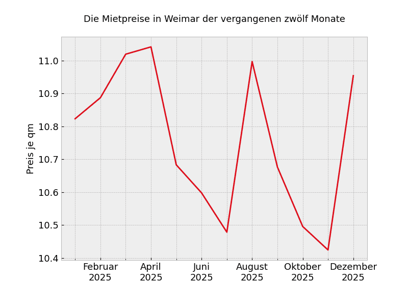 In ganz Weimar sehen die Mietpreisveränderungen wie folgt aus: