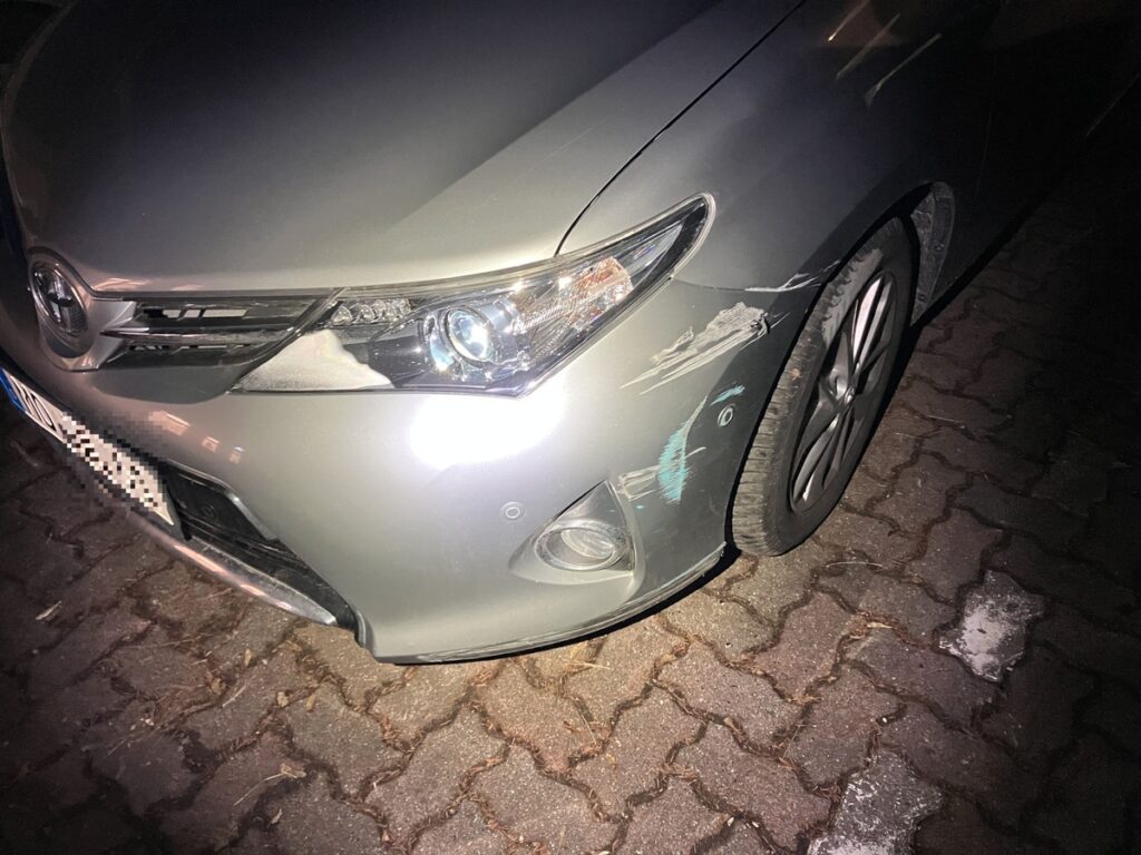 beschädigter ToyotaNach Angaben der Polizei Horneburg wird nach einem unbekannten Unfallverursacher gesucht. Die Behörde bittet um Hinweise aus der Bevölkerung.