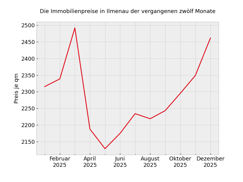 Unabhängig von der Wohnungsgröße müssen in Ilmenau mit Stand von heute 1.921 Euro pro Quadratmeter gezahlt werden.