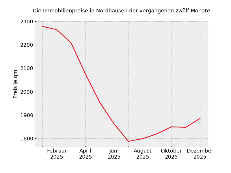 Unabhängig von der Wohnungsgröße müssen in Nordhausen mit Stand von heute 1.783 Euro pro Quadratmeter gezahlt werden.