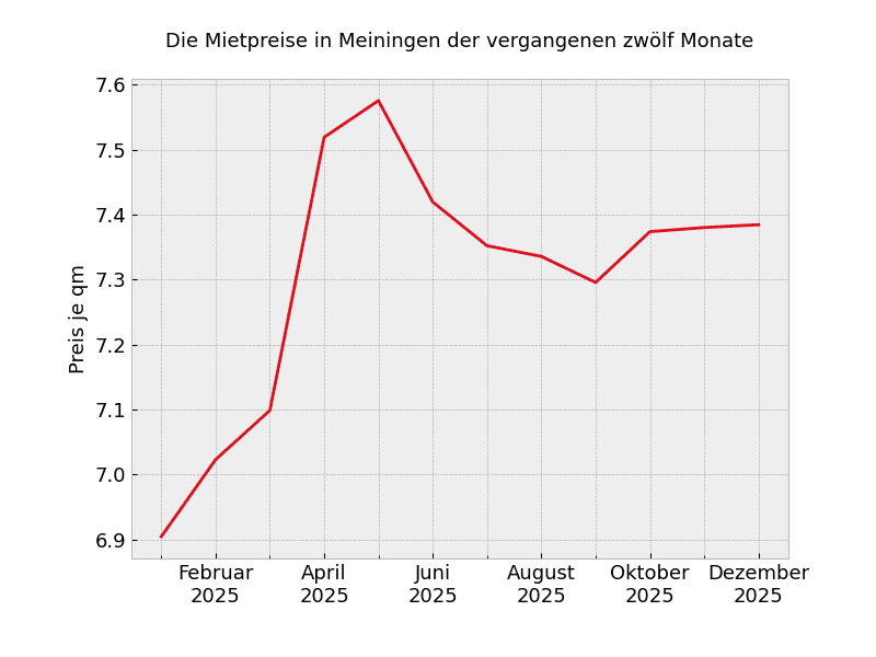 In ganz Meiningen sehen die Mietpreisveränderungen wie folgt aus: