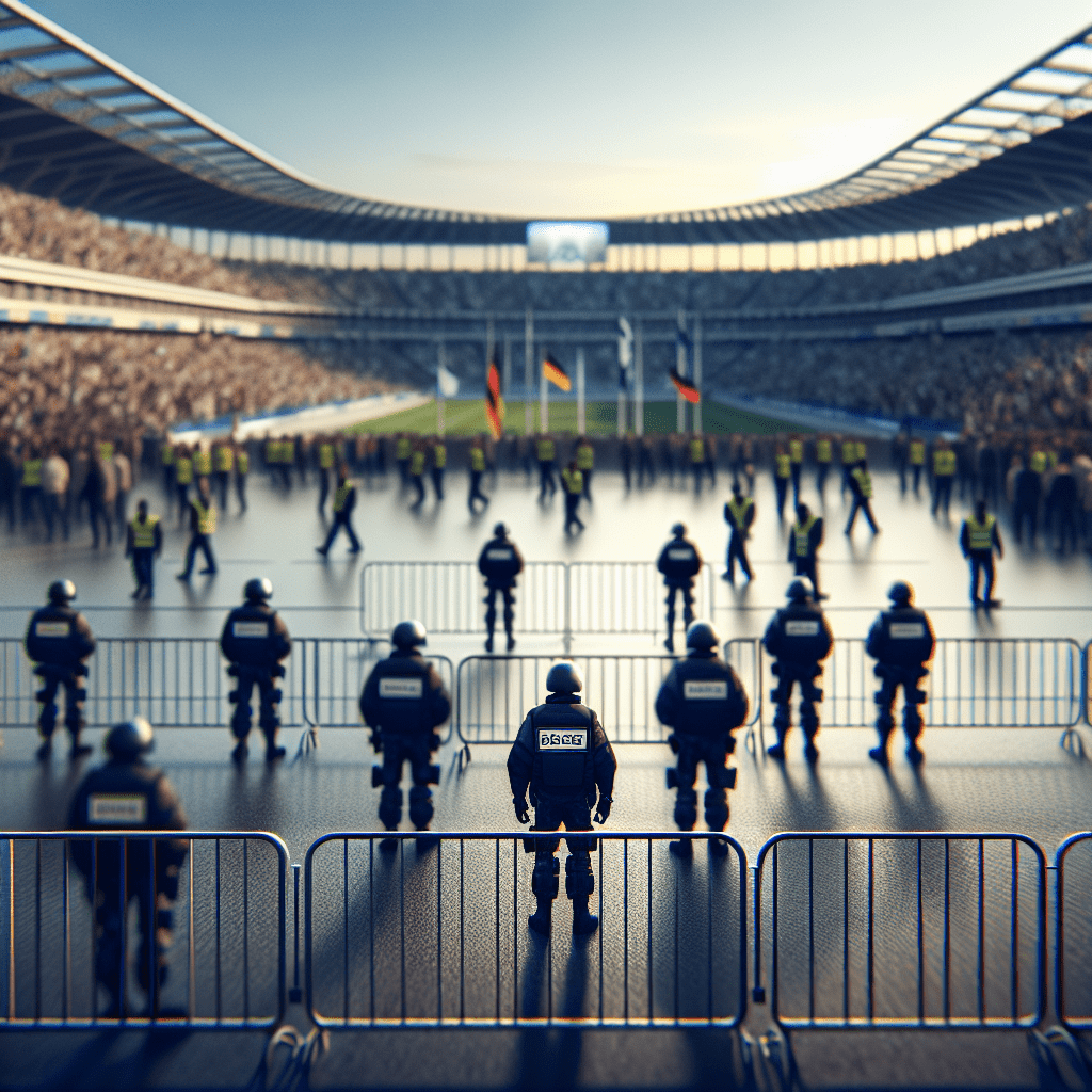 Die Einsatzkräfte sichern das Stadion und das Umfeld. Sie leiten Besucherströme und unterstützen weitere Sicherheitsmaßnahmen rund um das Spiel.