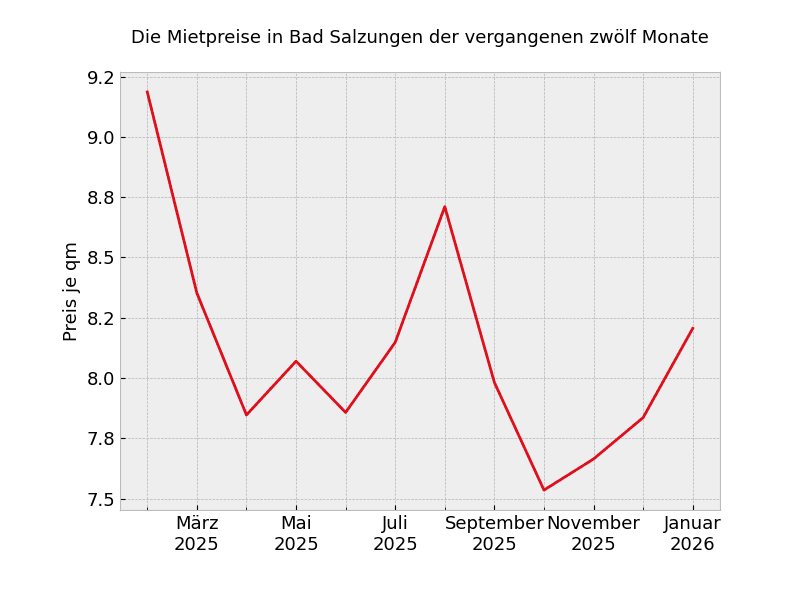 In ganz Bad Salzungen sehen die Mietpreisveränderungen wie folgt aus: