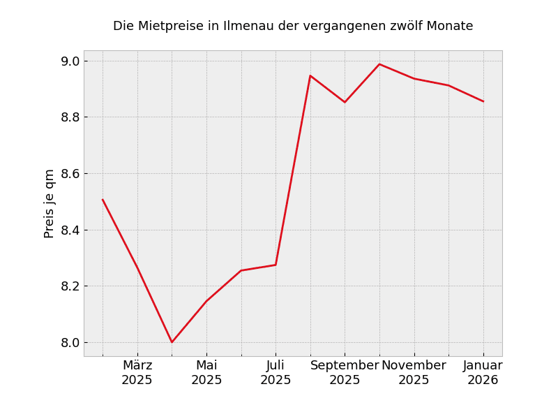 In ganz Ilmenau sehen die Mietpreisveränderungen wie folgt aus: