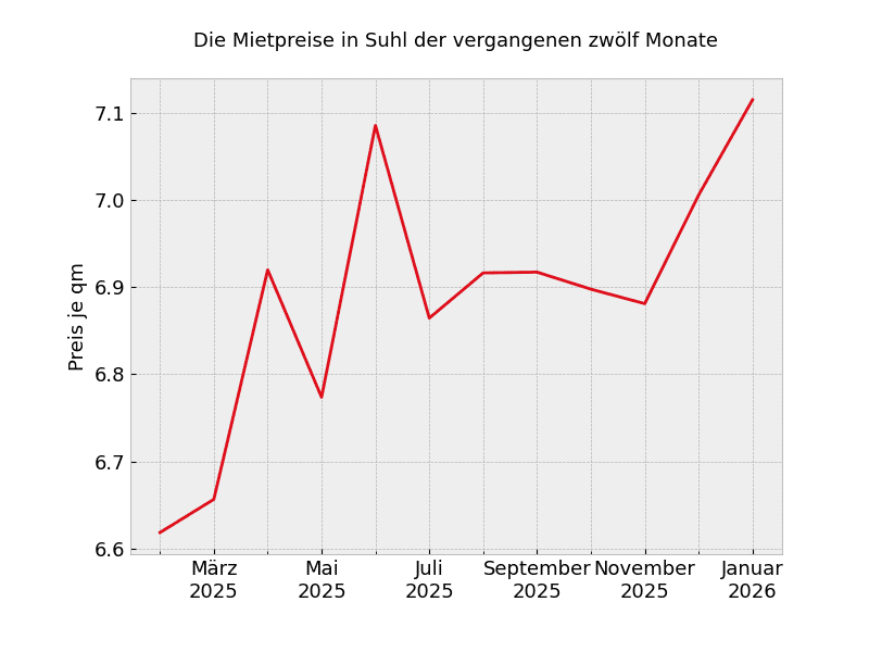 In ganz Suhl sehen die Mietpreisveränderungen wie folgt aus: