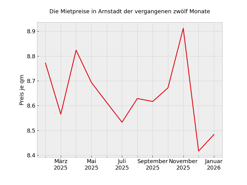 In ganz Arnstadt sehen die Mietpreisveränderungen wie folgt aus: