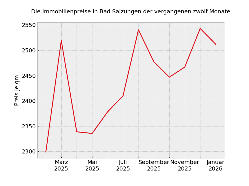 Unabhängig von der Wohnungsgröße müssen in Bad Salzungen mit Stand von heute 2.733 Euro pro Quadratmeter gezahlt werden.