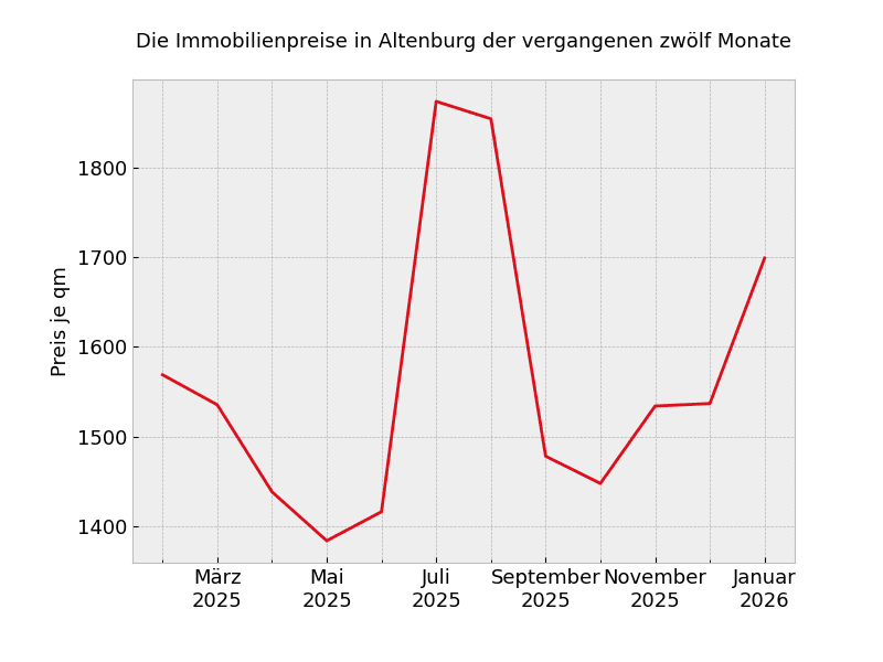 In ganz Altenburg sehen die Mietpreisveränderungen wie folgt aus: