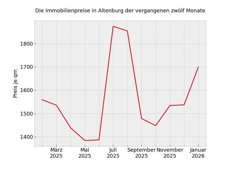 Unabhängig von der Wohnungsgröße müssen in Altenburg mit Stand von heute 1.049 Euro pro Quadratmeter gezahlt werden.