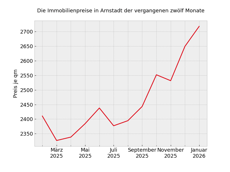 Unabhängig von der Wohnungsgröße müssen in Arnstadt mit Stand von heute 2.087 Euro pro Quadratmeter gezahlt werden.