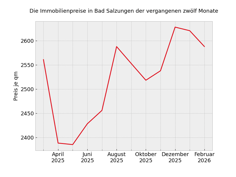 Unabhängig von der Wohnungsgröße müssen in Bad Salzungen mit Stand von heute 2.808 Euro pro Quadratmeter gezahlt werden.