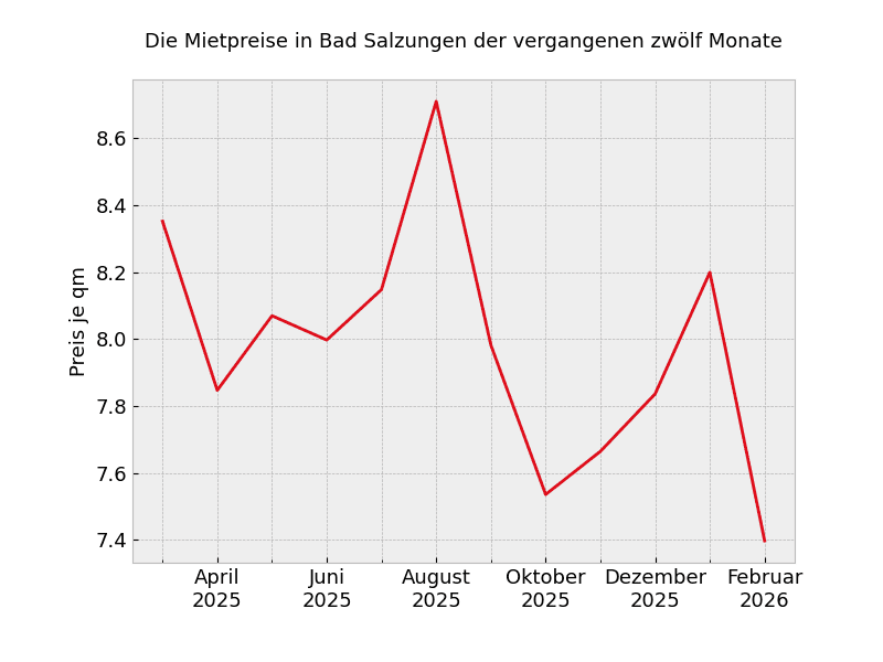 In ganz Bad Salzungen sehen die Mietpreisveränderungen wie folgt aus: