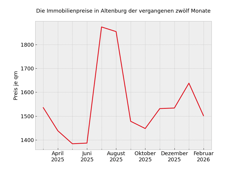 In ganz Altenburg sehen die Mietpreisveränderungen wie folgt aus: