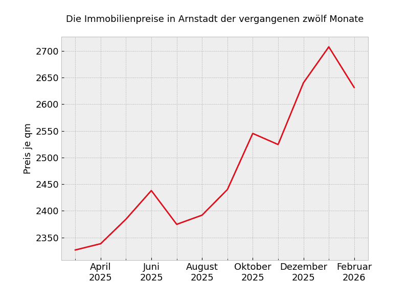 2.160 Euro: So viel kostet der Quadratmeter zur Zeit für Immobilien über alle Kategorien und Größen hinweg in Arnstadt und damit 15,7 Prozent mehr als vor 12 Monaten.