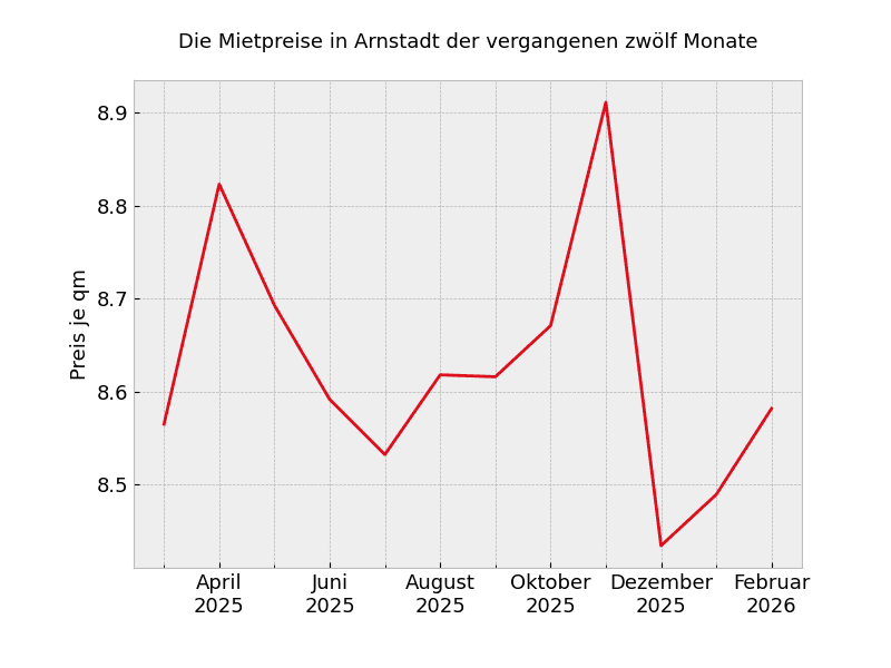 In ganz Arnstadt sehen die Mietpreisveränderungen wie folgt aus: