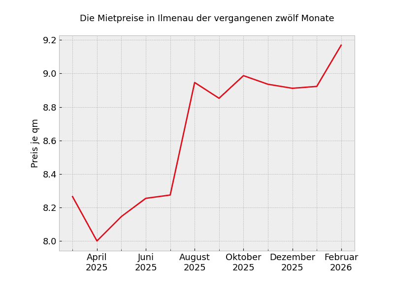 Unabhängig von der Wohnungsgröße müssen Mieter in Ilmenau derzeit 9,41 Euro pro Quadratmeter zahlen.