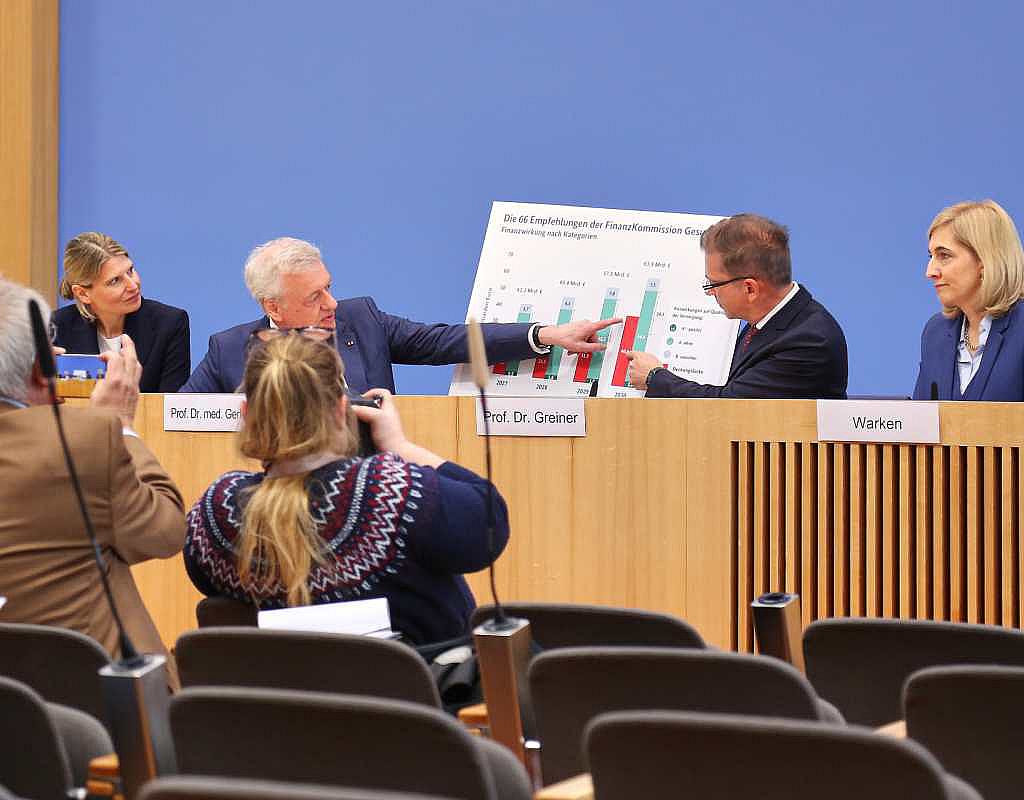 Die Finanzkommission Gesundheit hat 66 konkrete Maßnahmen vorgeschlagen, um die Beitragssätze der gesetzlichen Krankenversicherung zu stabilisieren. Der am Montag in Berlin vorgestellte erste Bericht der Kommission soll die drohende Finanzlücke von über 40 Milliarden Euro bis 2030 verhindern.