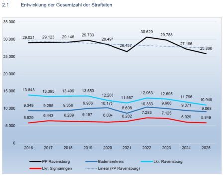 Das Polizeipräsidium Ravensburg hat die Kriminalitätsstatistik für das Jahr 2025 vorgestellt. Der Bericht fasst die Entwicklungen der Straftaten […]