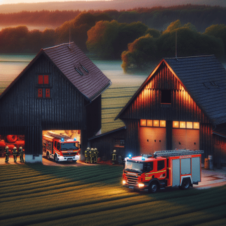 Heute Nachmittag wurde in Sinsheim-Weiler ein Brand in zwei Scheunen gemeldet. Die Scheunen standen durch eine Zwischenwand getrennt.